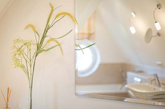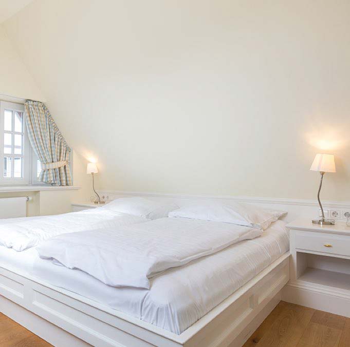 Ein schön gestalteter Raum mit grandiosem Ausblick über die Nordsee. Ein Doppelbett (ca. 1,8x2m). Gekonnt designtes Bad mit Wanne und WC.